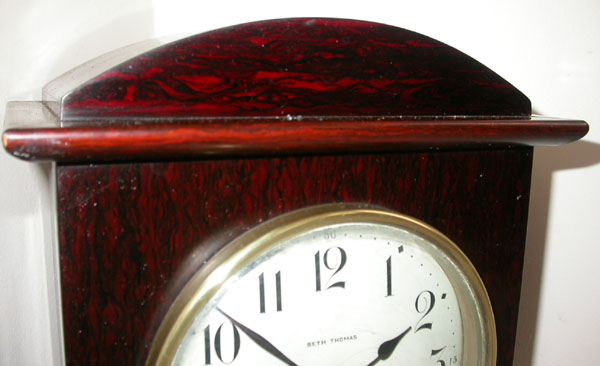 This attractive Seth Thomas Mantle Clock was made in the 1920-30s. The movement is original and has been completely overhauled and restored to great working condition. The gorgeous adamantine case with its gleaming brass bezel is a lovely red cherry colour. It strikes the hour and the half hour on a melodious medium gong. Key and pendulum are included. It measures 8.25 inches by 5.25 inches by 11 inches high.