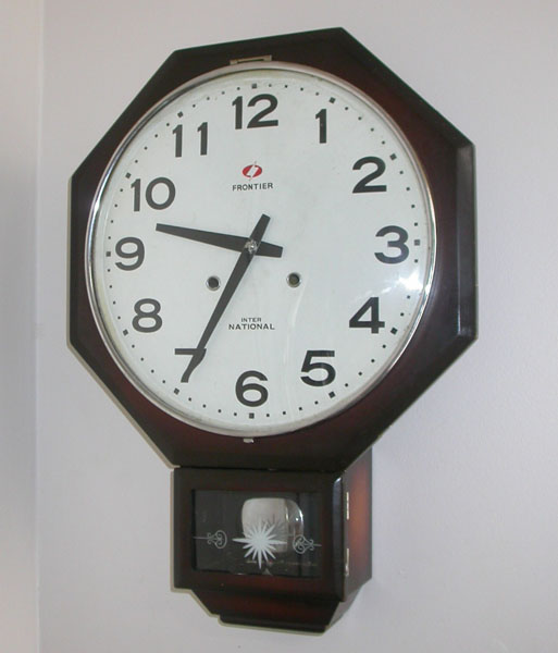 Octagonal School Wall Regulator Clock - t0470 This lovely restored School Wall Regulator was made in the 1950s. The 31 day movement is original and has been completely overhauled and restored to great working condition. This makes the clock a real bargain because of the high cost of getting one overhauled & restored. The gorgeous case has a gleaming chromed bezel and pendulum. It strikes the hour and the half hour on a melodious light gong. It measures 16 inches by 5 inches by 22 inches high. Price: $250.00Cdn Contact us |